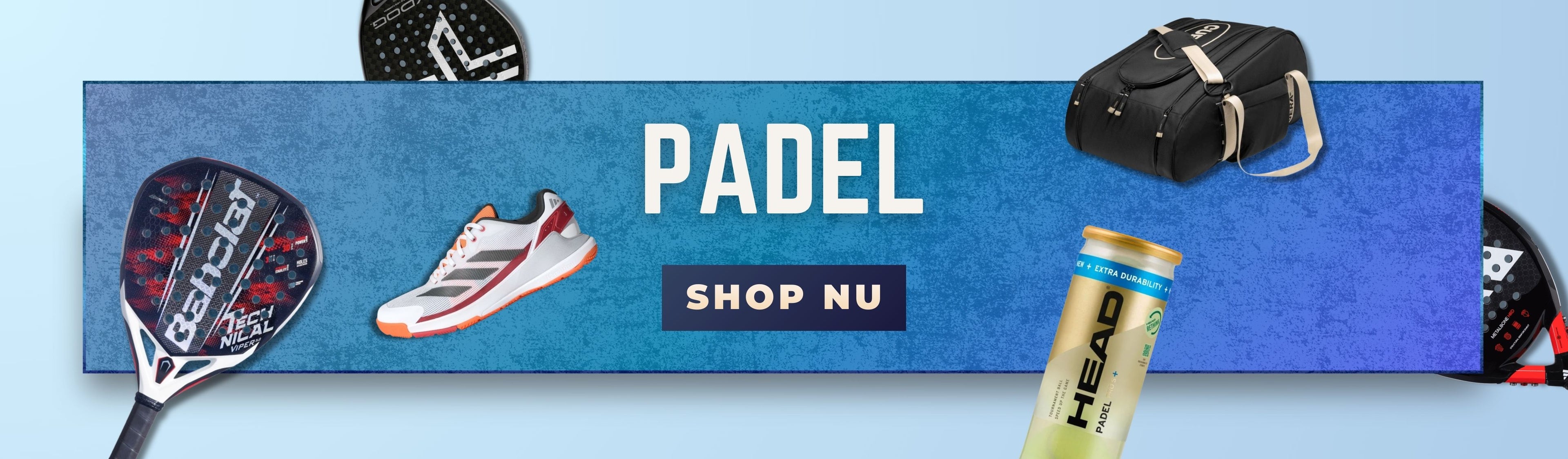 Vi har samlet et af Danmarks største udvalg af padelbat, bolde, sko og tasker – både til nybegynderen og den øvede. Vælg mellem kontrolbat, powerbat eller allround-modeller fra brands som Babolat, Adidas, Nox og mange flere. Vi fører naturligvis også tilbehør som grips, rammebeskyttere og vibrationdæmpere.