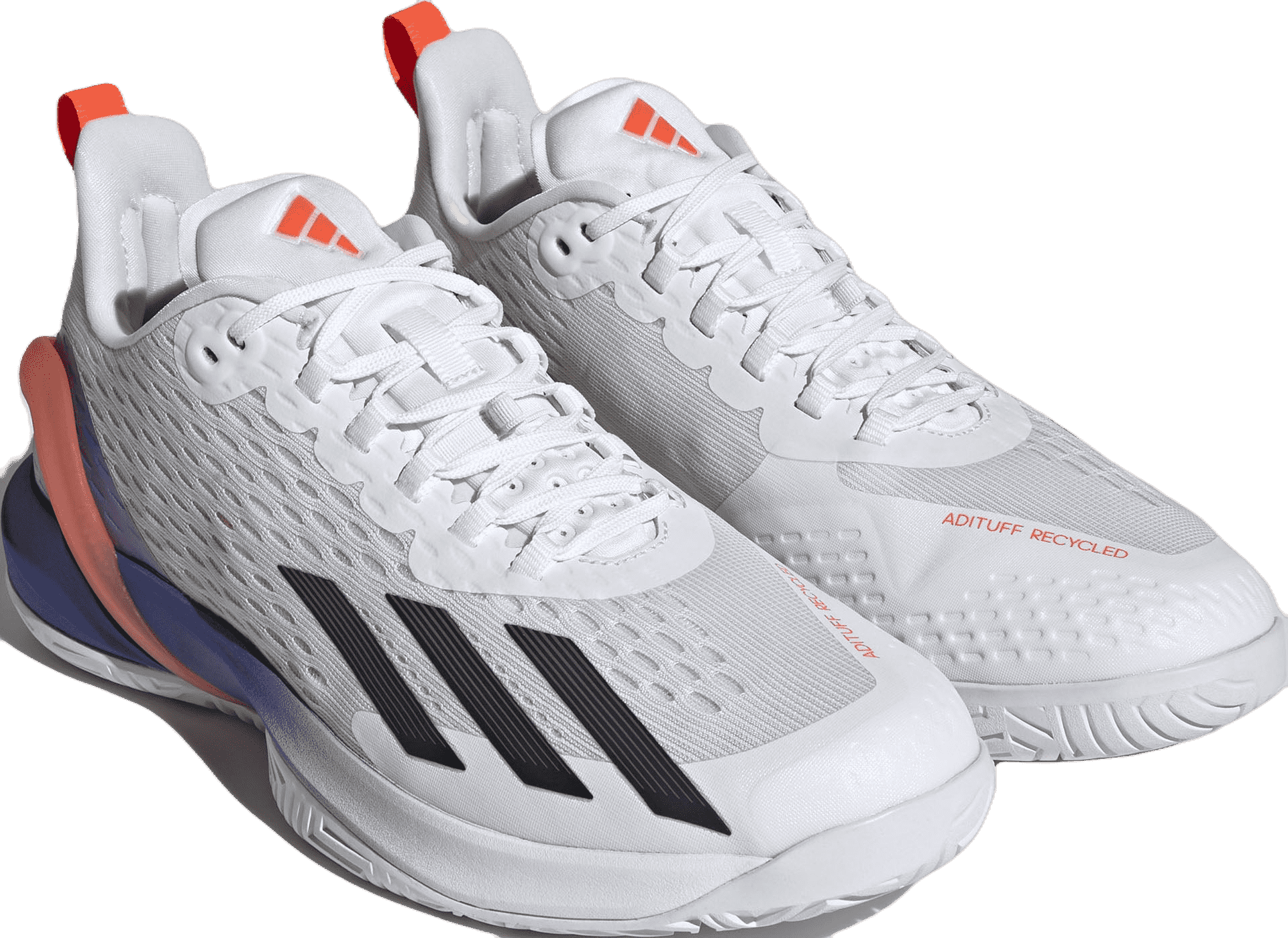 Overdelen i mesh sikrer åndbarhed og en let vægt, og den er fremstillet af op til 50% genbrugsmaterialer, der taler direkte ind i Adidas' erklærede mål om at reducere mængden af plastisk affald.