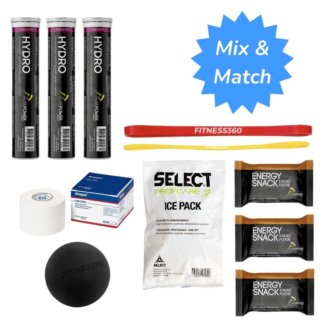 Den oplagte pakke til turneringsspilleren, som skal have de vigtige ting til padeltasken. Med disse produkter sikrer man sig, at man ikke går kold på turneringsdagen, hvor der skal spilles 3-4 padelkampe. Du får derudover elastikker og lacrossebold til opvarmning og skadesforebyggelse. Hvis uheldet er ude kan isposen og sportstapen hjælpe dig på vej. Ønsker du at supplere med den fulde pakke, skal du i stedet se på Elitepakken.