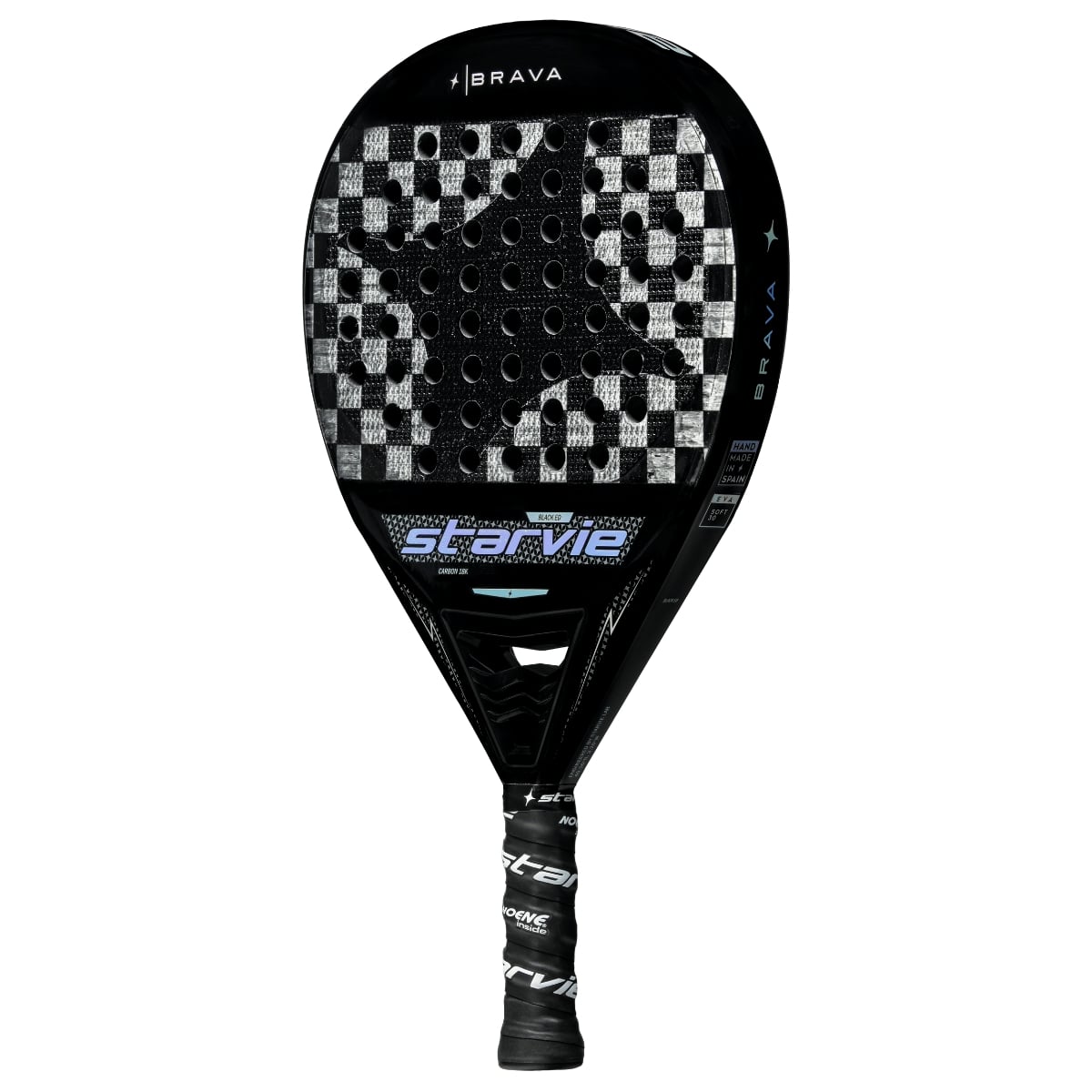 Starvie Brava Soft 2025 er et high-performance padelbat designet til spillere, der ønsker en kombination af power og komfort. Med sit dråbeformede hoved og en hovedtung balance er dette bat perfekt til den offensive spiller, der vil presse sine modstandere med kraftfulde slag. Sweetspottet er placeret højere i battet, hvilket giver større power og præcision, når bolden rammes rent, mens den bløde EVA Soft 30 skum sikrer en behagelig spiloplevelse med et blødt touch.