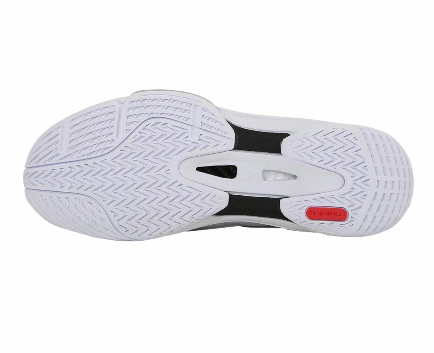 Mellemsålen er fremstillet i et elastisk materiale, som dels er 20% lettere end tidligere modeller og dels gør de hurtige retningsskift nemmere at foretage. Overdelen indeholder lette og ventilerende mest-materialer, så dine fødder er sikret en vis udluftning under de hårde kampe i hallen.